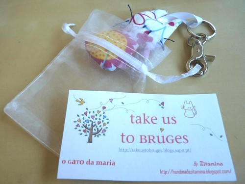 * A escolha dos nomes foi aleatória. Esta é a primeira mostra. Outras se sucederão. E, querendo, todo o gato terá um bicho destes com o seu nome. As próximas encomendas são tratadas directamente com a Zita lá no blogue dela. Para terem uma ideia, este presente vai aparecer-vos assim, cheio de estilo: