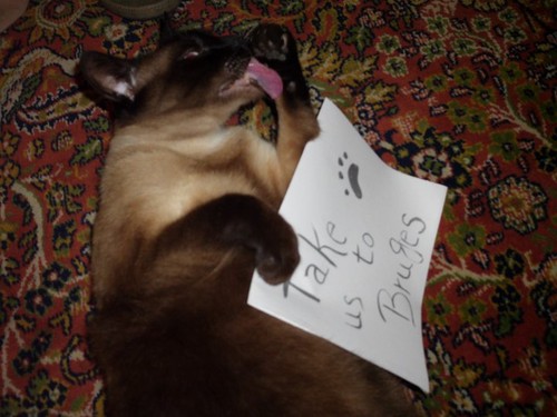 Posto isto, iremos oferecer uma caixinha de Marmelada Branca – certificada como doçaria conventual – àquele embaixador que nos conseguir apresentar a foto mais original com um cartaz ou uma folha A4 [que nós não somos esquisitos] que diga “Take us to Bruges”. Pode ser na praia, no campo ou na cidade. Com o cão, o gato e o periquito. Sozinhos ou em grupo. Na mercearia do bairro, no café ou na esplanada. Em terra, no mar ou no ar. É como quiserem. Sejam criativos.